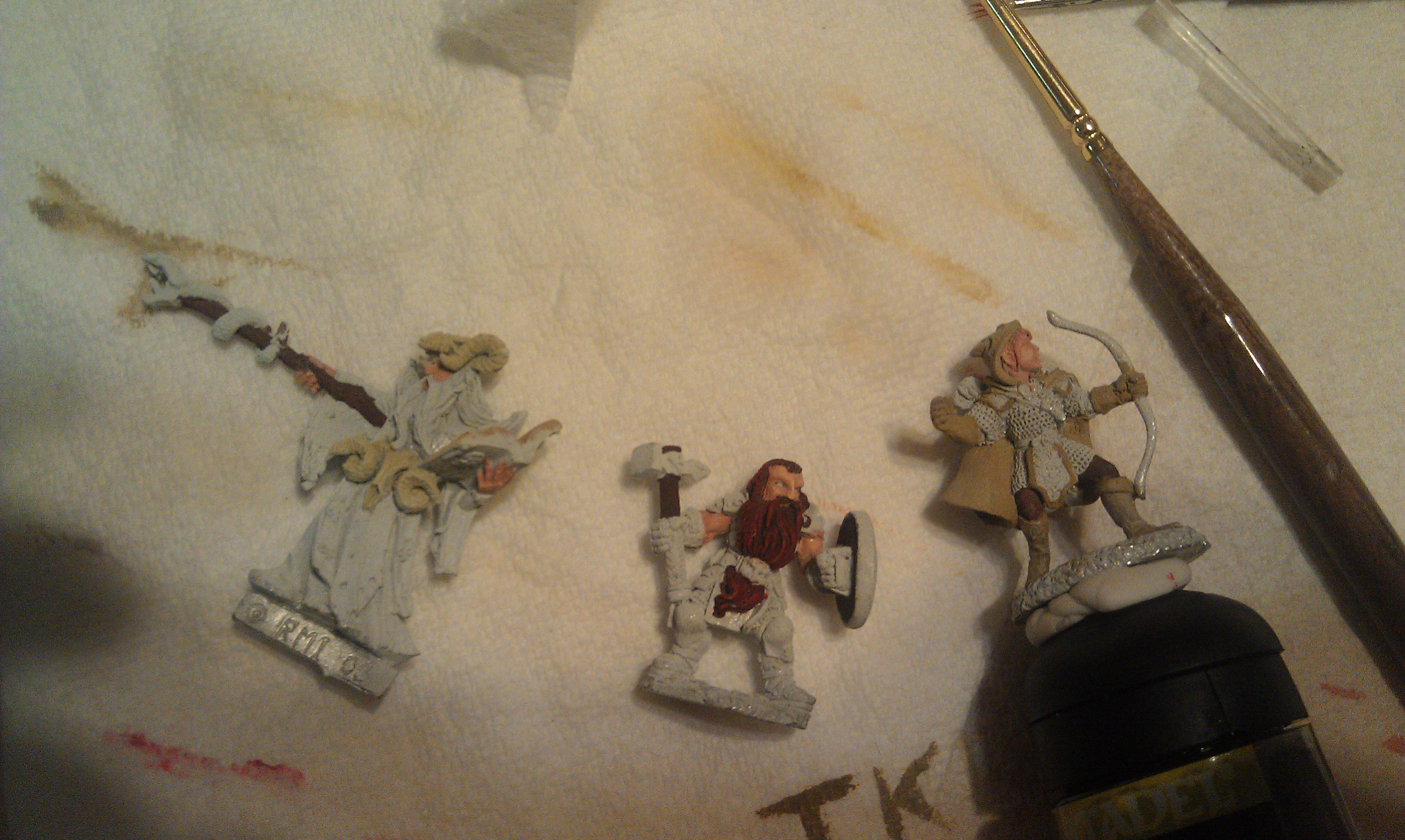 Flesh Tones Started on 3 of the 5 minis. The other 2 are still setting up since they had some minor Green Stuff Additions.