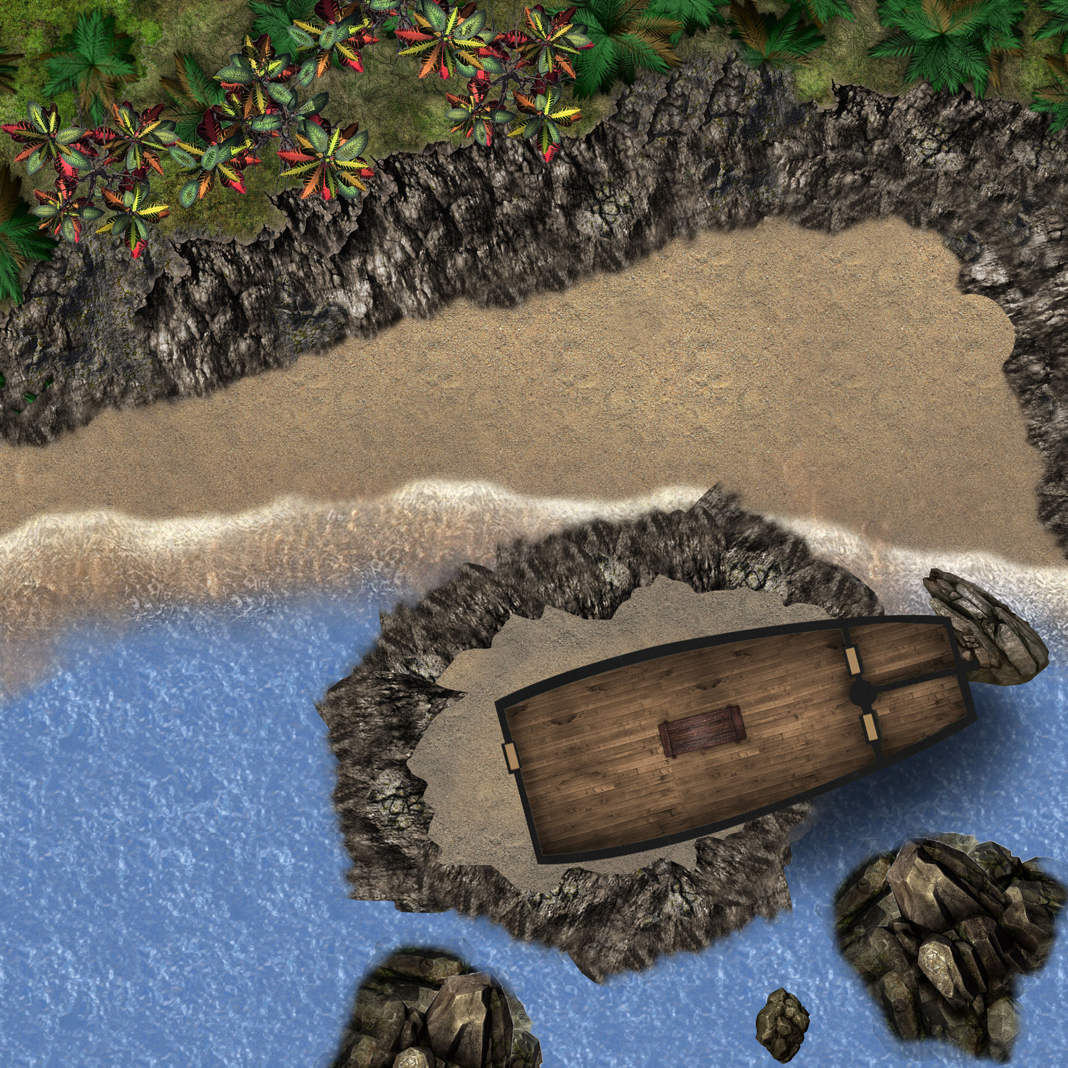 Note: These maps are my own work and have in part been created by reproducing found textures online. Since they were made for roll20 they are gridless, but their dimensions (mostly) are for a 1″ grid on a 30″x30″ slide. They’re FREE to use.