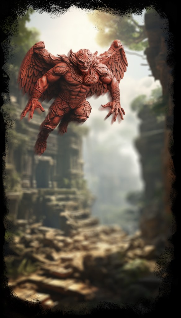I am using the Creatuanary Prompt Challenge to craft unique 5e creatures for DMs like you, to unleash upon their worlds. And today’s prompt, “Terracotta Winged Guardian,” led me on an unexpected, devilishly fun path. 😈